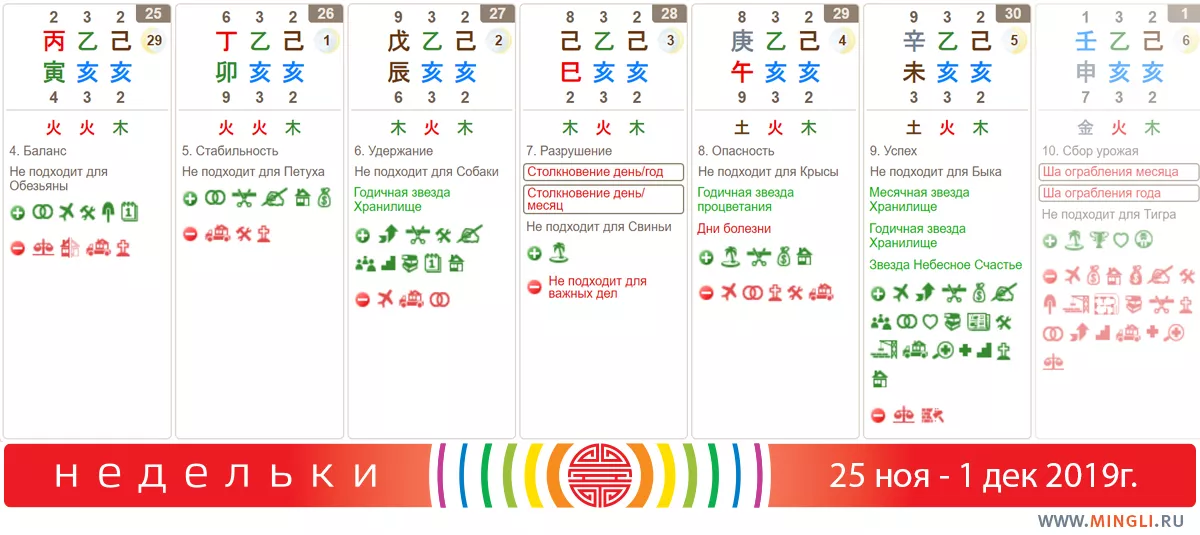 25 ноября, понедельник. Спокойный, особо не выдающийся в плане бонусов. Хорош для начала рабочей недели и не подходит для участия в соревнованиях любого толка, где вы хотите выиграть. В этот раз победит дружба. День хорош, в первую очередь для тех, кому благоприятен огонь (как и завтрашний). Иньским Огням по дню рождения стоит опасаться конкуренции.