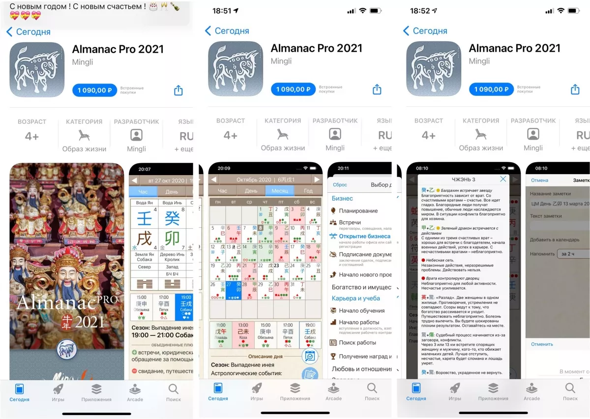 До 3 января 2021 в AppStore Календарь и Альманах продаются со скидкой, с учетом комиссии магазина.