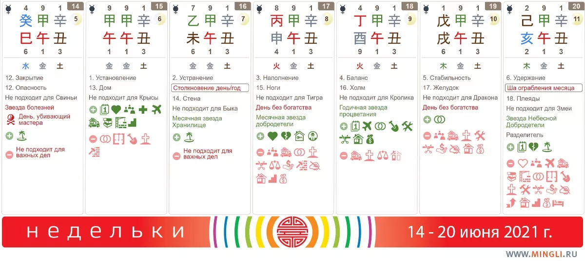 19 июня, суббота. Чем заняться в день без Богатства? Сам день хороший, с массой благородных звезд, просто исключите все дела, связанные с финансами. Если этот день выбрать для строительства или земляных работ, то это принесет продвижение по службе, рождение прекрасного сына и большое неожиданное богатство. Почему на сайте чаще всего не рекомендованы строительство и ремонт в дни Стабильности? Потому что все, что мы делаем в этот день, рассчитано на стабильный и долгий процесс. Видимо, китайцы боялись, что ремонт может затянуться) Но именно сегодня ци нам благоприятствует.