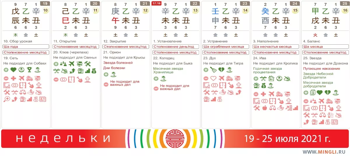 22 июля, четверг. Если Коза-Бык (а, особенно, с иньским Металлом или иньским Деревом наверху) есть в вашей карте, постарайтесь провести день спокойно, важных дел не планируйте. Даже иньским Металлам, которым, казалось бы, досталось столько земли в дате + дерево (деньги), не стоит рассчитывать на быстрое обогащение - металл слишком хрупок и уязвим, не перенапрягитесь. Посвятите день отдыху, размышлениям и неспешной подготовке.