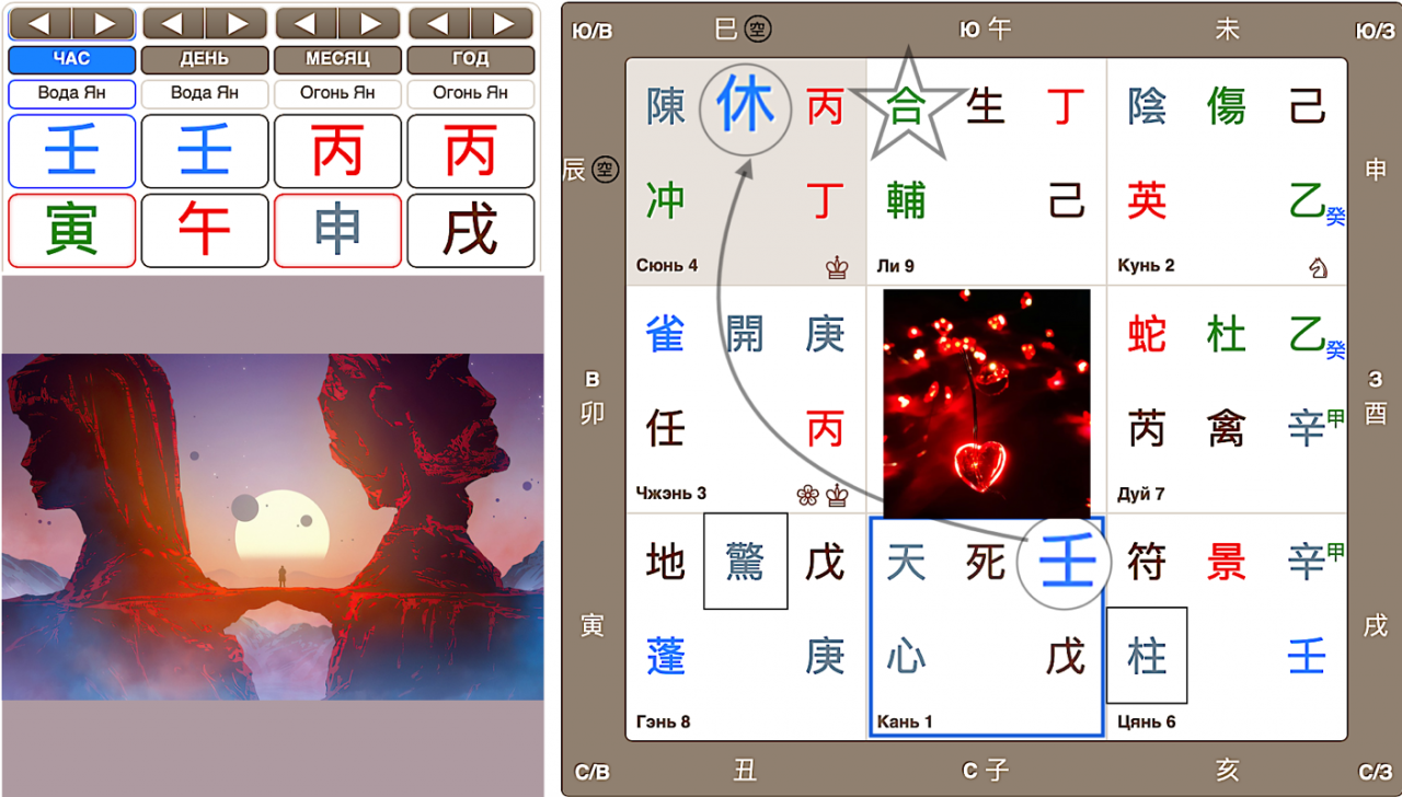 Дворец жизни героя 壬 покоряет дворец его половины 丁, что соответствует древнекитайским нормам морали: мужчина должен контролировать женщину.