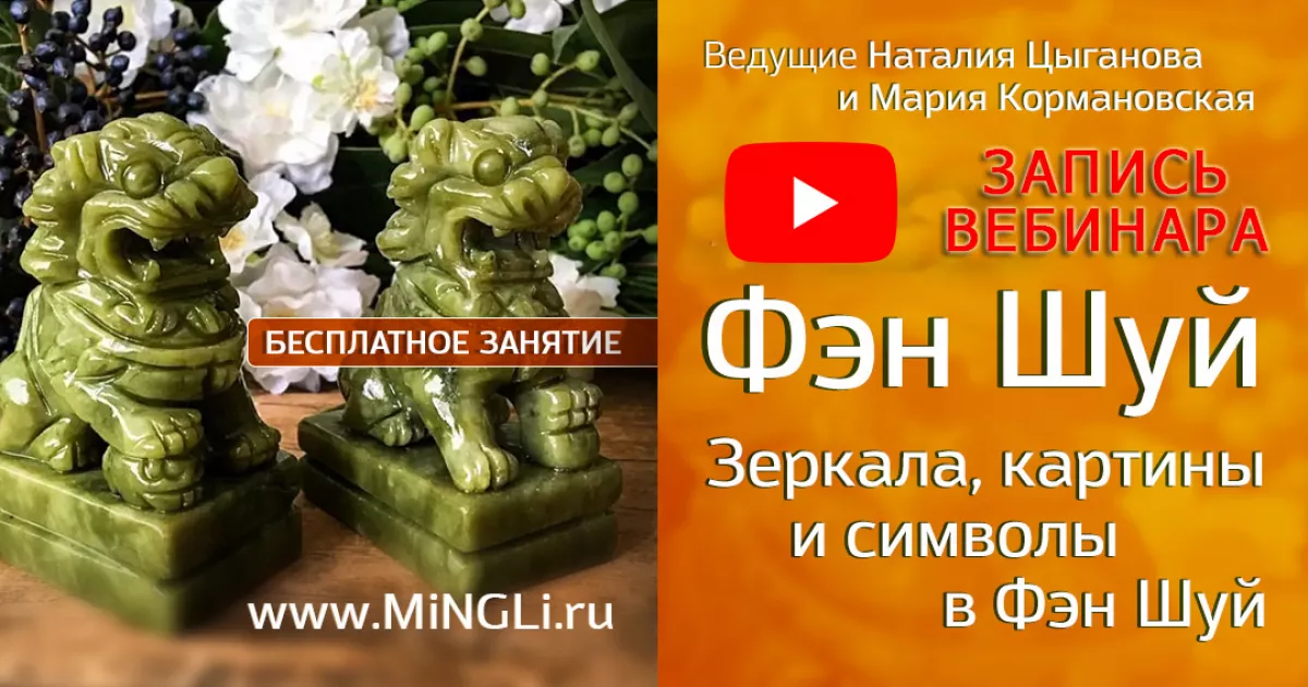 12.09.2022 прошел наш вебинар по Фэн Шуй на тему «Зеркала, картины и символы в Фэн Шуй», где Наталия Цыганова и Мария Кормановская рассказали о том, имеют ли зеркала смысл с точки зрения Фэн Шуй, способны ли фигурки и картины изменить энергетику помещения, могут ли игрушки навредить, какие картины выбрать для улучшения Фэн Шуй пространства, а также о том, ставить ли дома фэншуйские аксессуары и, если да, то где именно.