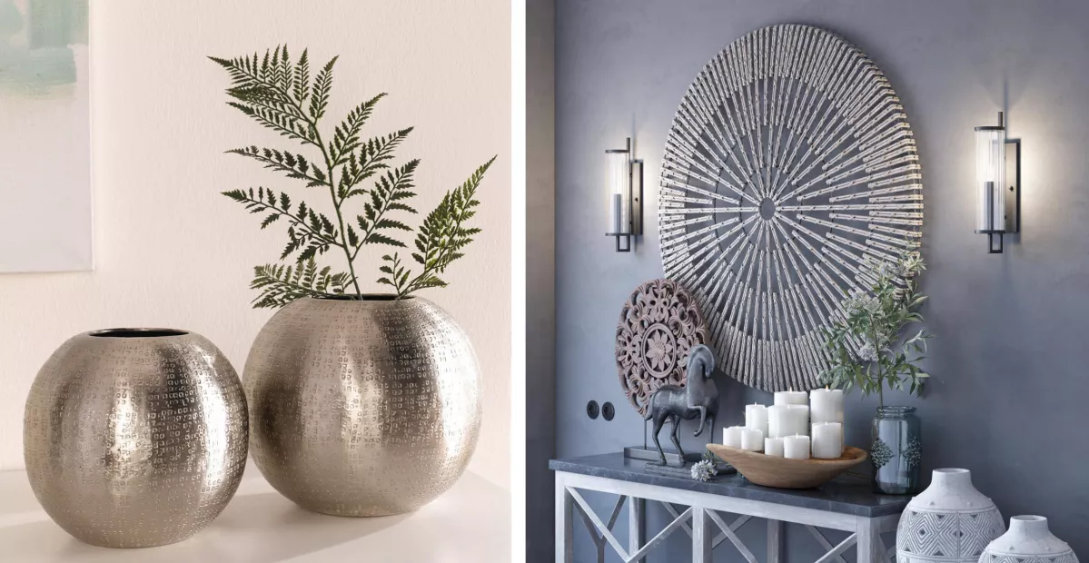 В современном мире можно найти различные варианты дизайна помещения и элементов декора, которые нам помогут. Вспоминаем основные ассоциации с Металлом в Фэн Шуй – форму, цвет и материал. Со стихией Металла, помимо самого материала, у нас ассоциируются круглые и овальные формы, серый, белый, серебристый, золотистый цвета. Ниже примеры, которые я рекомендую своим клиентам при проведении Фэн Шуй аудита пространства, если в комнате «найдена» натальная 5, горная или водная.