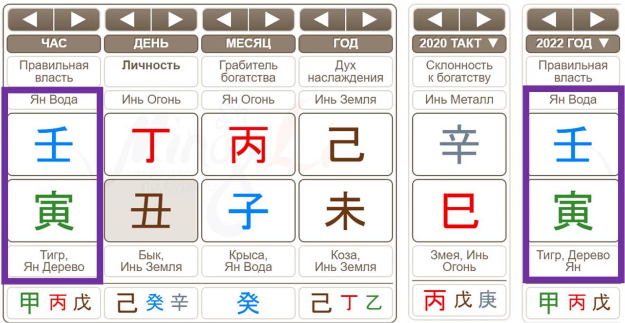 Давайте рассмотрим пример, когда дубликат пришел в году и затронул часовой столп в карте. Что происходит в такой момент? Происходит дублирование и усиление этого столпа и той сферы, за которую он отвечает. Те же элементы, те же фазы ци, те же символические звезды.