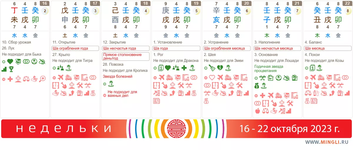 16 октября, понедельник. Если вам полезен Огонь, можно воспользоваться сегодняшним днем – потом целую неделю с энергий Огня будет проблематично. Но вот затевать ремонт или земляные работы точно не стоит! Можно начинать учиться, взыскивать долги, подписывать итоговые документы, ходить на свидания. Учтите, что день травмоопасен.