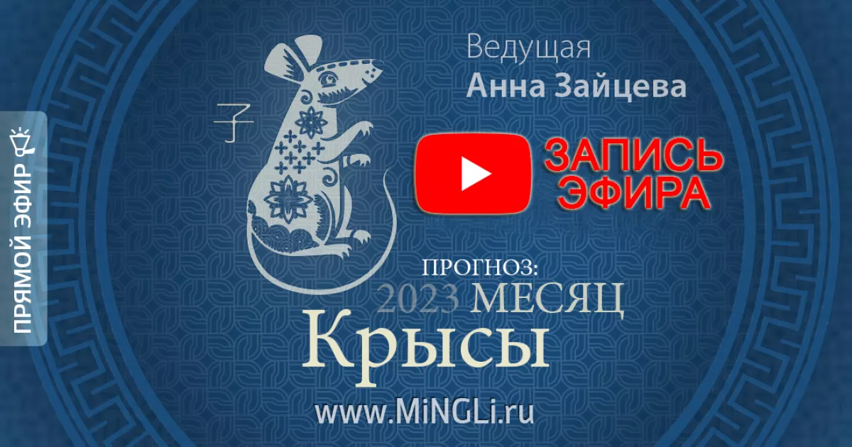22 Ноября 2023 состоялся прямой эфир с Анной Зайцевой на тему «Бацзы: прогноз на месяц Крысы (декабрь) 2023 года».