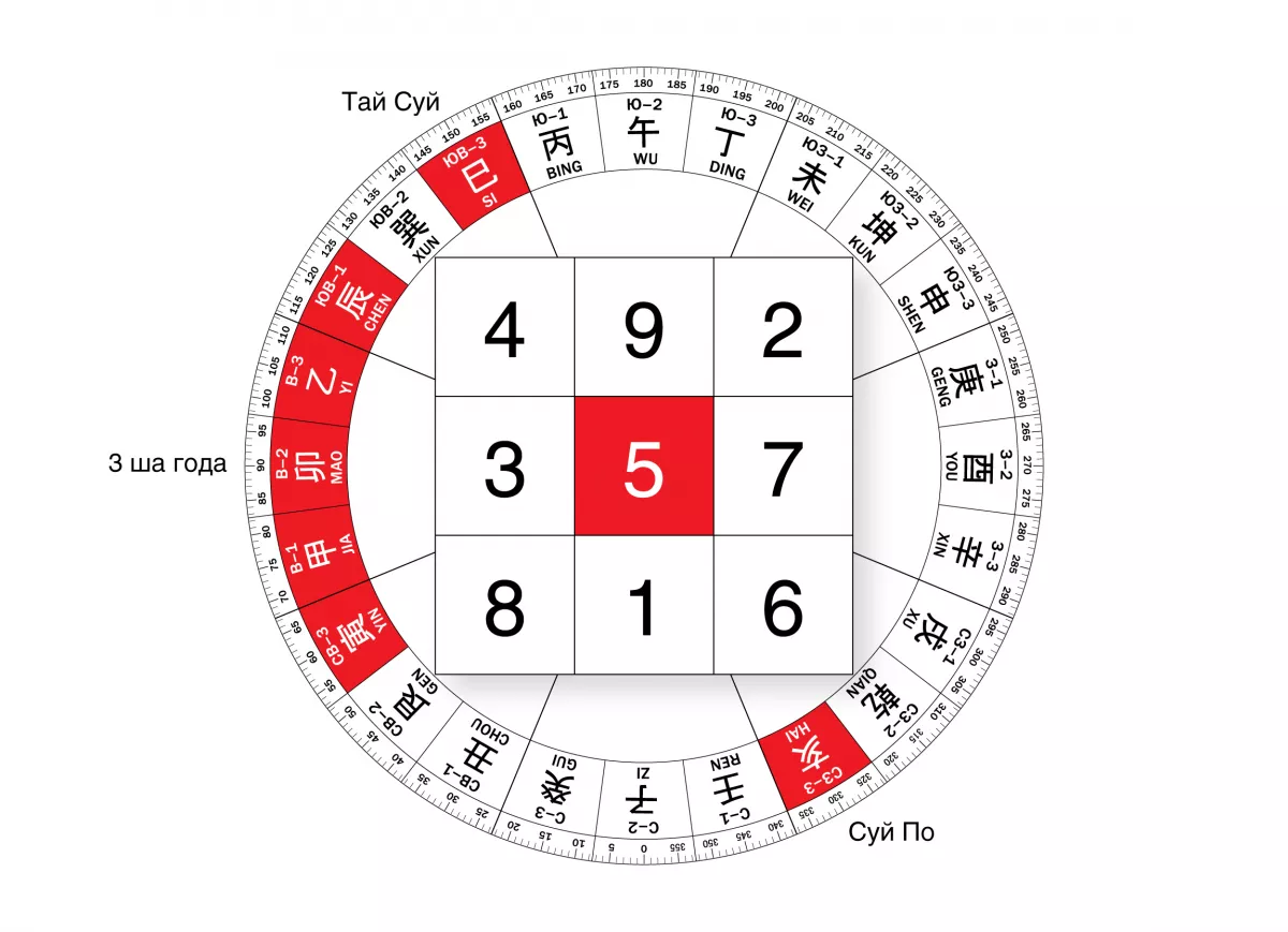 Князь Года – Тай Суй 太歲(岁)– самая сильная энергия года, соответствующая земной ветви года, поэтому тревожить ее не стоит. Не рекомендуется затевать ремонт в Тай Суй, особенно серьезный, со сверлением стен и шумом, копать землю в этом секторе. Не стоит также сидеть лицом в направлении Князя, даже если это благоприятное направление по числу ГУА. Результатом излишней активности в этой области могут быть травмы, аварии, серьезные заболевания.