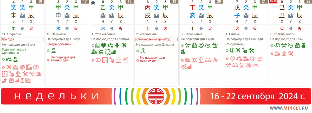 16 сентября, понедельник. Хоть и ша, но работать надо. Учтите просто, что втягиваться в расписание и все успевать может быть непросто, так что пусть ваш график будет достаточно свободным. На самом деле, можно не только отдыхать и общаться, но и делать большинство важных дел. Главное – не фиксировать конкретные сроки и дедлайны – вот они имеют высокие шансы «слететь». Быкам по году рождения рекомендованы только повседневные активности.