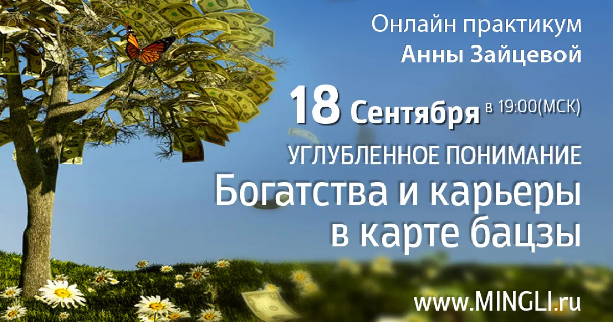 18 сентября в 19:00 (по Мск) состоится практикум профессионального модуля Бацзы «Углубленное понимание богатства и карьеры в карте Бацзы: богатые и бедные судьбы».