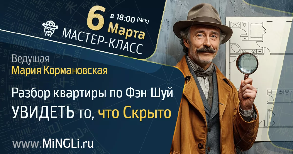 Во время эфира преподаватель школы Mingli и эксперт Фэн Шуй Мария Кормановская на реальном примере покажет, как проходит консультация по Фэн Шуй. Разберем квартиру одинокой девушки, которая никак не может построить долгосрочные отношения. Также разберем причины ее проблем со здоровьем. Из примера увидим источники проблем и озвучим методы коррекции.