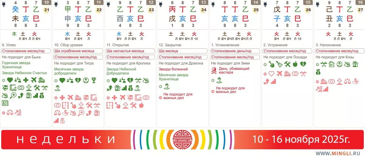 13 ноября, четверг. Сегодня прям хорошо закрывать дела, завершать проекты, отдавать долги с мыслью, что больше ситуация, когда надо что-то отдавать, не повторится. Не планируйте на этот день многого и не используйте его для начала проектов, в которых надо выдерживать сроки (ремонт начинать, например, не стоит). Бережем здоровье, особенно это касается Бин, янских Огней. Драконам день не подходит.