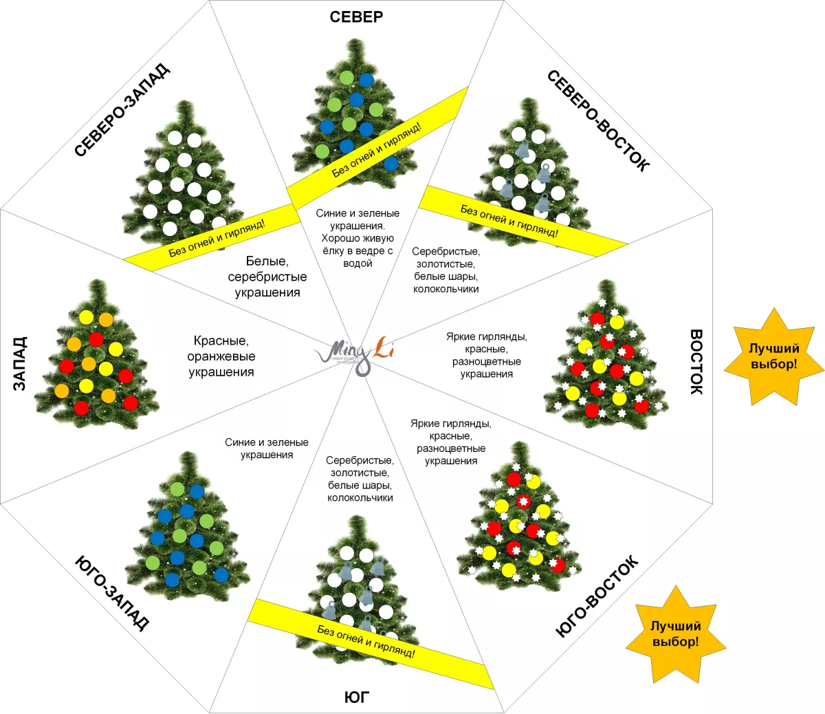 - Точно НЕ стоит ставить мигающую яркую елочку на северо-востоке!