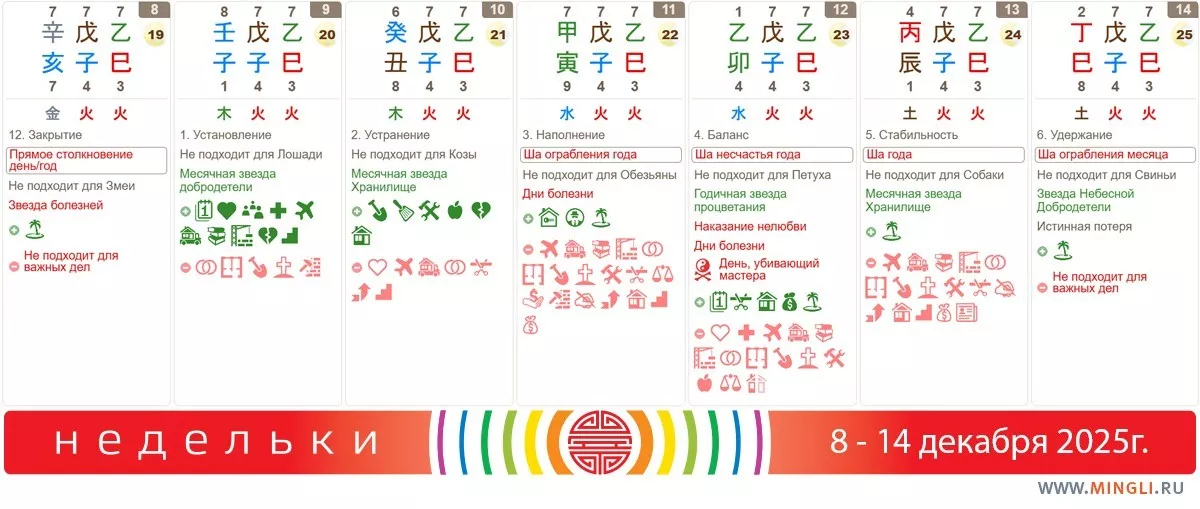 Рекомендации на неделю 8 -14 декабря (ба цзы прогноз 2025, прогноз гороскоп на декабрь)