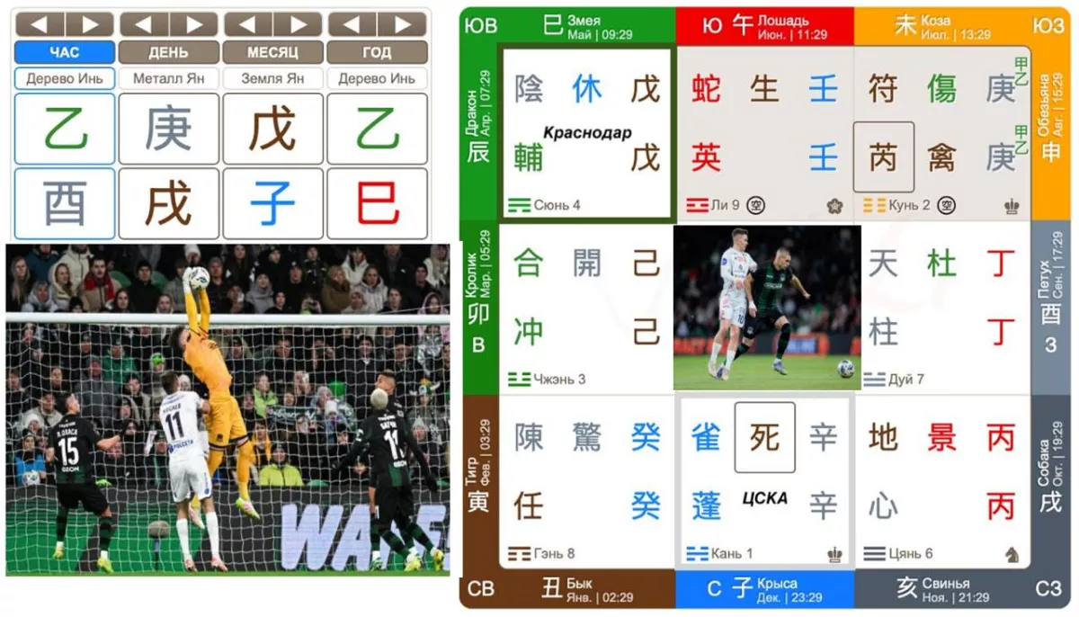 Свисток. Начало. В голове чётко всплыл расклад недельной давности: карта – фу инь. НС 戊, характеризующий команду «Краснодара» по году основания клуба, опустился во дворец Сюнь, а НС 辛, представляющий команду ЦСКА, опустился в дом Кань.