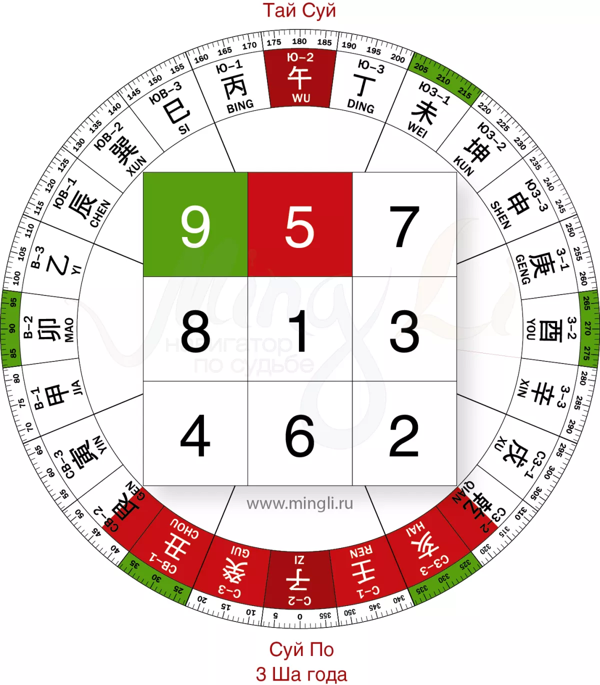 Чётко напротив Тай Суй всегда находится Суй По — Разрушитель года. В 2026 году он располагается в секторе Крысы (Север-2)