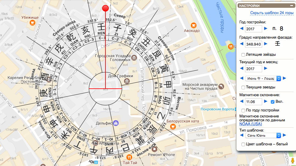 Что касается фэн шуй, то здесь мы используем шаблон 24 гор, а также навигатор по направлениям.