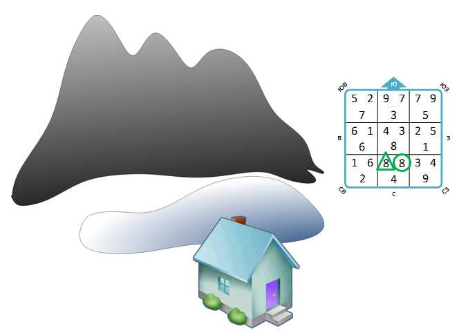 Напоминаю, мы пока говорим только о карте, а не о том, как энергии летящих звезд работают в конкретном доме. Карта звезд – это только потенциал, схема на бумаге. И самый главный ключ к пониманию звезд – поддержана ли карта ландшафтом или же нет. И поддержана ли она формой и конструкцией дома.