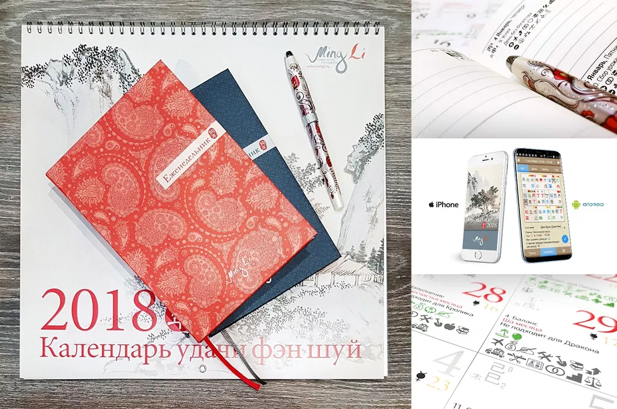 Для тех, кто привык активно пользоваться телефоном – также хорошая новость: Альманах 2018 и Календарь удачи фэн шуй 2018 на IPhone и Android уже в продаже. Альманах на IPhone ищите в Appstore!